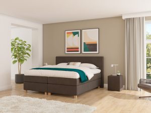 De boxspring County 1000 is door zijn moderne uitstraling een echte eyecatcher in uw slaapkamer. Het heeft een mooi vlak hoofdbord en strakke metalen zwarte poten daarnaast zijn de matrassen volledig mee gestoffeerd. Naast dat de County een mooie uitstraling heeft biedt het ook een uitstekend slaapcomfort. De boxspring bestaat uit 3 verschillende lagen. De onderste laag bestaat uit Airboxx-systeem™ onderboxen die zorgen voor een stabiele ondersteuning van het matras. De tweede laag bestaat uit 7 zone VL Virgo® matrassen die zorgen voor een goede ondersteuning van uw lichaam en die volledig zijn meegestoffeerd. De bovenste laag is een topmatras Excite HR die zorgt voor een ultiem slaapcomfort. De boxspring County wordt geleverd inclusief onderboxen, een of twee matrassen, een topper en een quality potenset. De boxspring is leverbaar in verschillende breedtes en lengtes waardoor de boxspring precies in uw slaapkamer past. Bij Lease-bed kunt u altijd rekenen op 5 jaar volledige garantie en Nederlandse kwaliteit. Al onze boxsprings worden gefabriceerd in onze eigen fabriek, hierdoor bieden wij altijd voordelige prijzen en snelle levertijden.